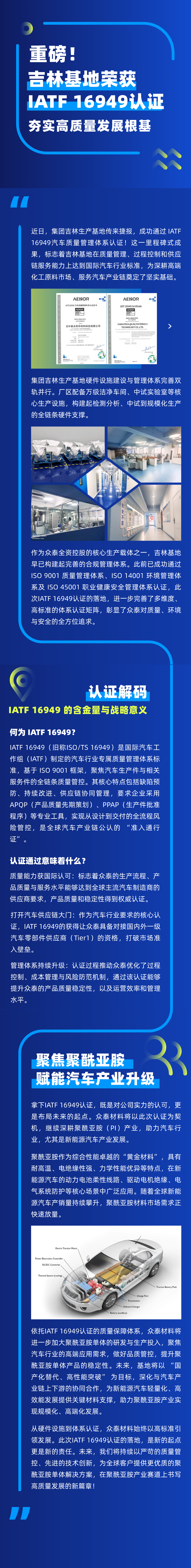 重磅!眾泰材料吉林子公司榮獲IATF 16949認證,夯實高質(zhì)量發(fā)展根基